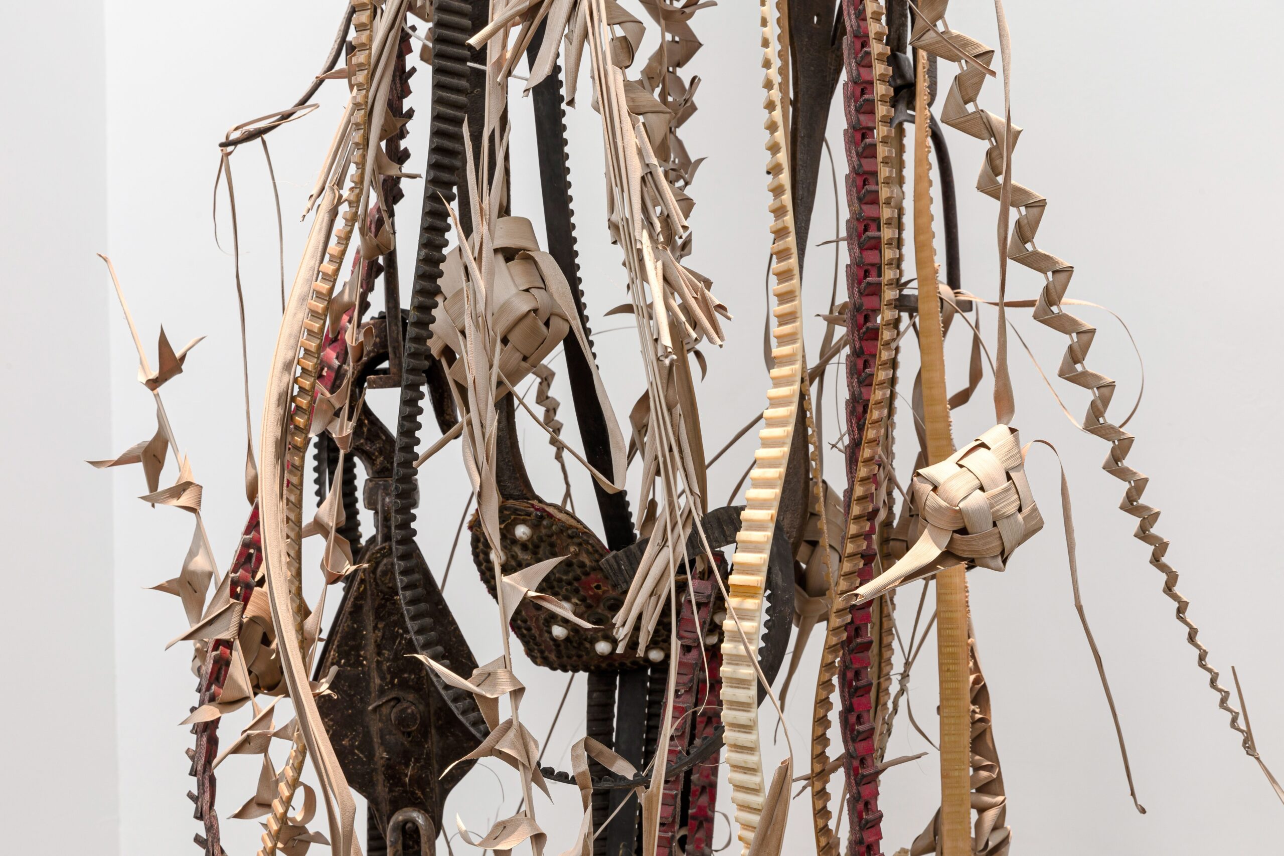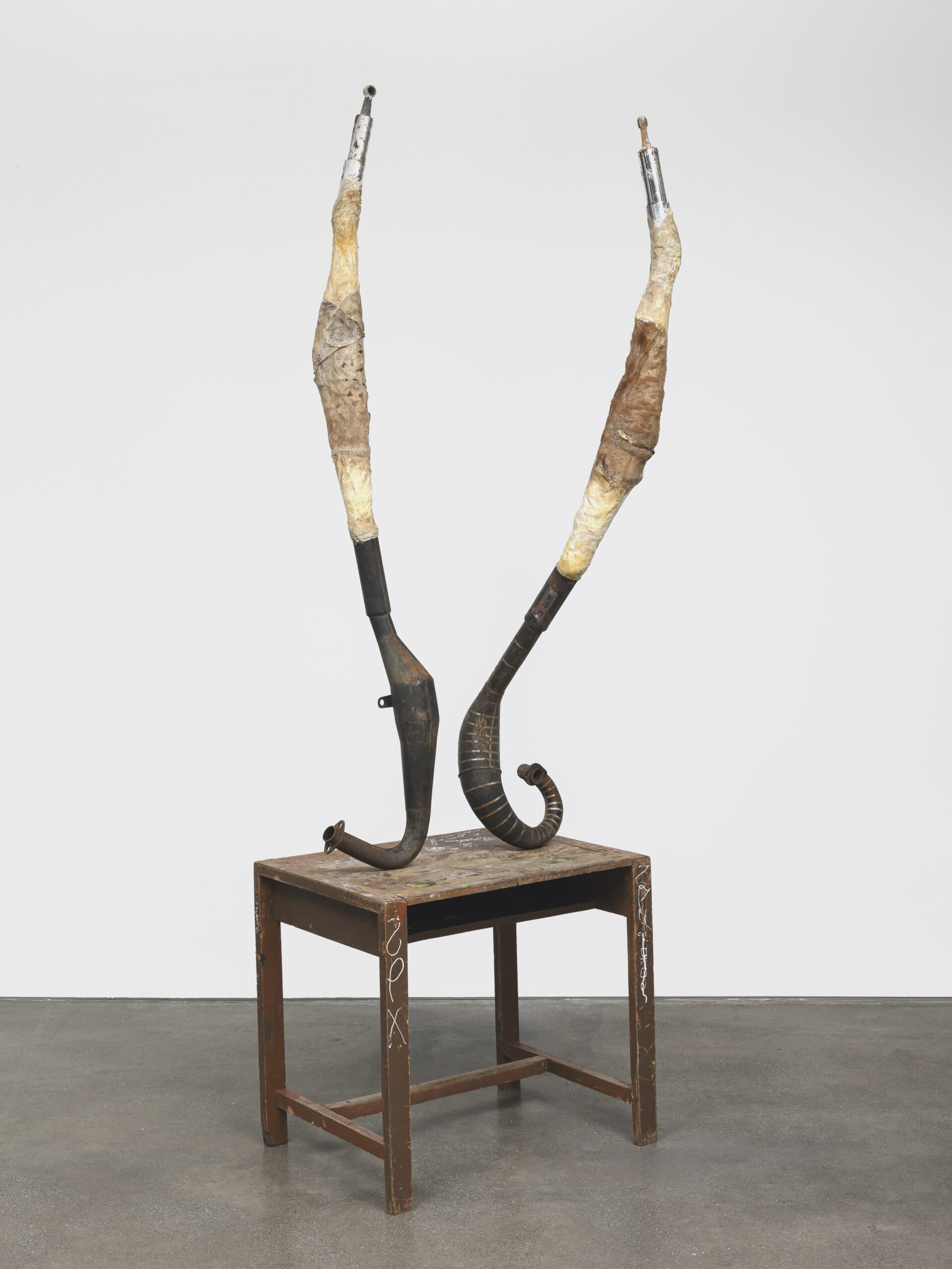 exhausts, shock absorbers, beeswax, palm wax, tree resins, vellum, fur, canvas, wood, steel, school furniture, 128 × 284 × 97 cm